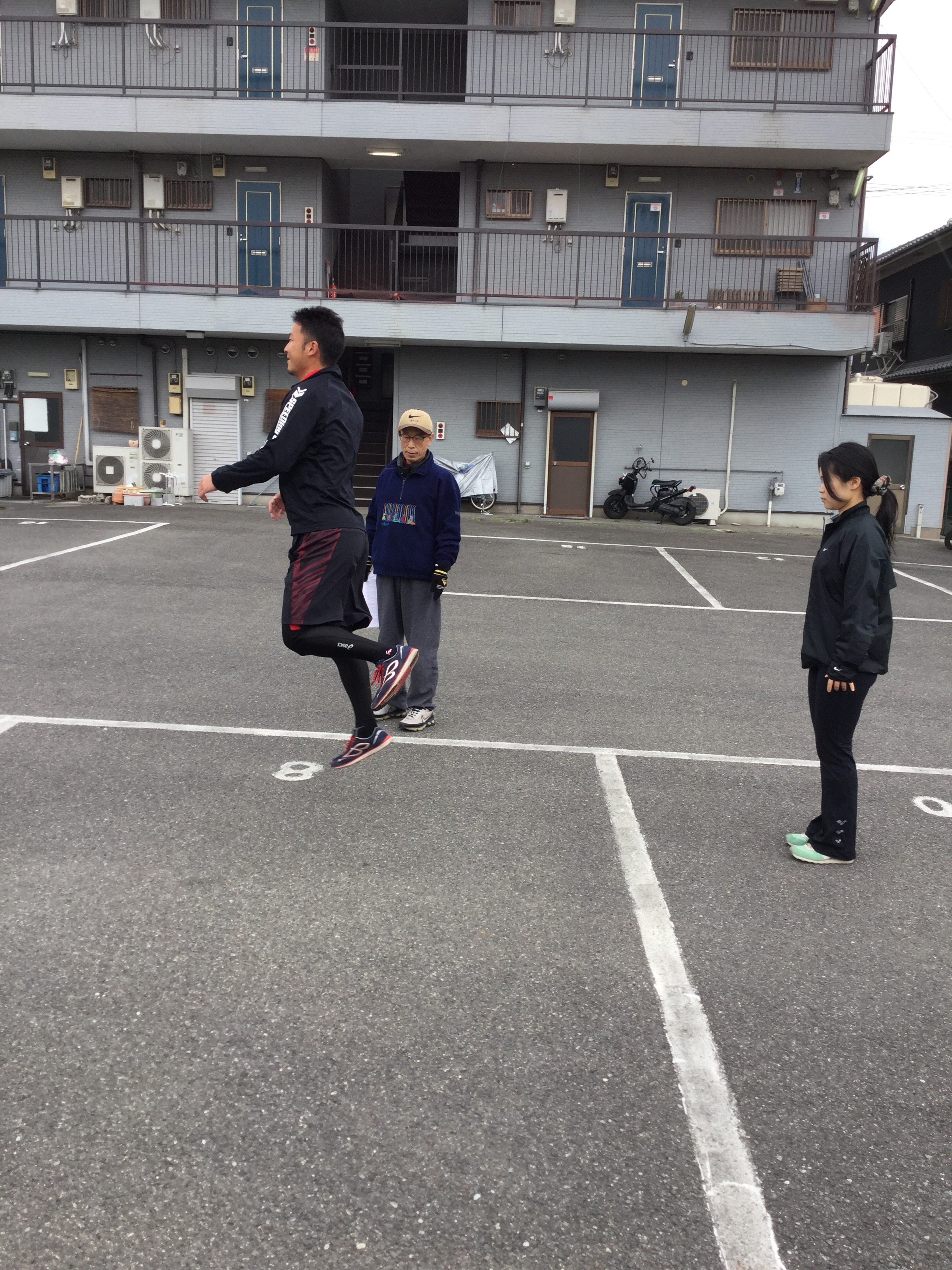 自分が指導する時は重心移動、走る時の体の前後での脚の動きを作るという目的でやっていますが、改めて目的、それらをどのような意識で行うのか、自分自身実際にその動きがきちんとできているのかチェックをお願いしました。