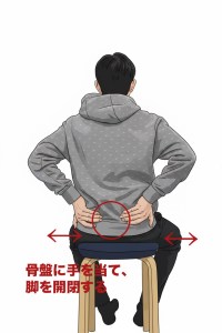 ・仙腸関節のあたりに手を当てた状態で膝を開閉する